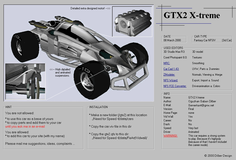 Dieses Projekt stellte einen meiner ersten Auto-MODS für das Autorennspiel Need for Speed: High Stakes dar. Ich war damals 16 Jahre alt und hatte eine Leidenschaft für PC-Spiele. Die Moddingszene war mir neu aber dennoch sehr verlockend. Vieles musste ich mir eigenständig beibringen, indem ich praktische Erfahrungen sammelte(learning by doing).